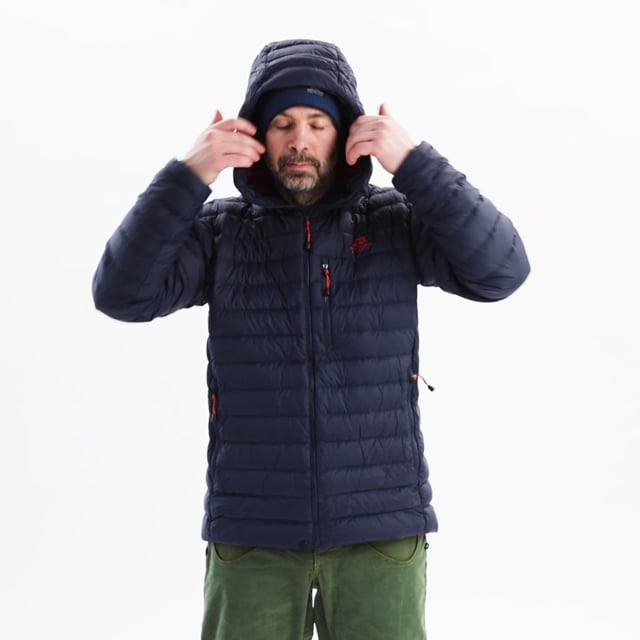 Hetten har en høy godt isolert krage og beveger seg godt med hode. Den gir god isolasjon og passer over de fleste klatrehjelmer. Jakken har en brystlomme og 2 sidelommer.
